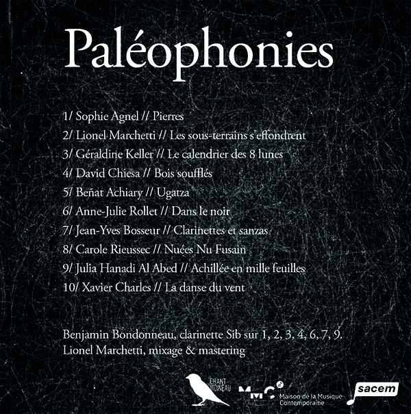 Compositions de Benjamin Bondonneau, Jean-Yves Bosseur, Julia Hanadi Al Abed, Mathias Pontevia, Stéphane Torré-Truéba, Guillaume Laidain, Christophe Ratier et Bruno Laurent.